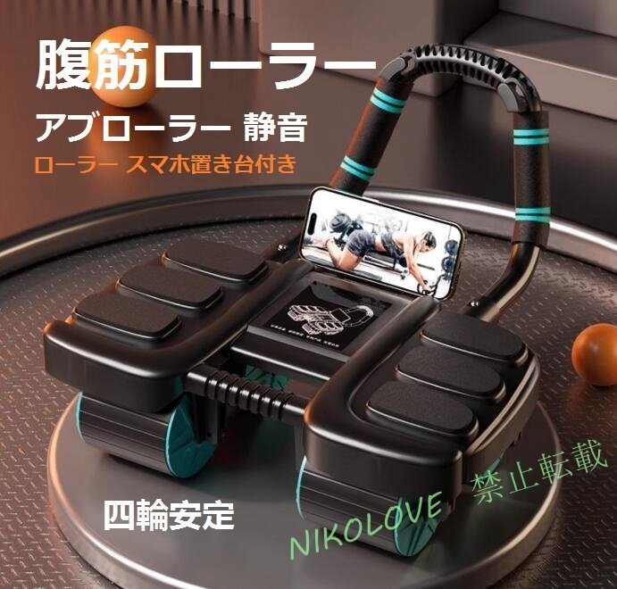 - 腹筋ローラー アブローラー 静音アブホイール 筋肉ローラー スマホ置き台付き オートリターン 腹筋 四輪安定システム トレーニング器具