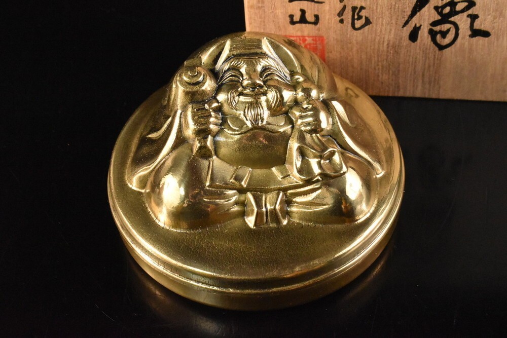 - 【雲】某名家収蔵品 金属製 大黒彫刻形 朱肉入 共箱 書道具 古美術品(書道具印材判子掛軸) F8614