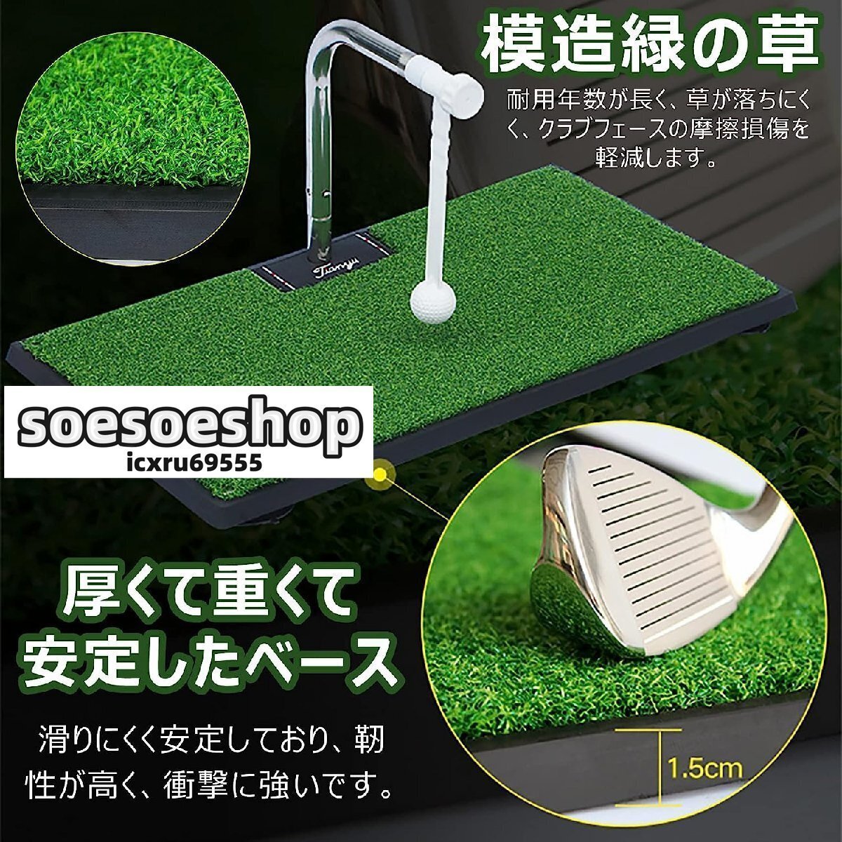 - ゴルフ スイング練習用マット 360°回転 ポータブル 5段階高さ調整可能 トレーニングエイド テクニックを磨き 家庭用 ゴルフクラブ練習