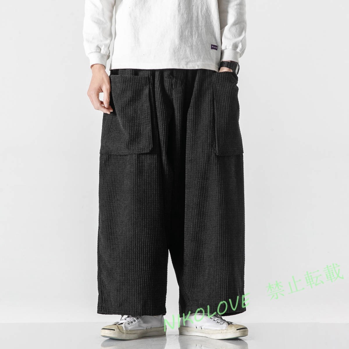 - ☆新品サルエルパンツ メンズ ワイドパンツ 大人気 コーデュロイ パンツ チノパン ゆったり 大きいサイズ 五色 M~5XL選択可 黒