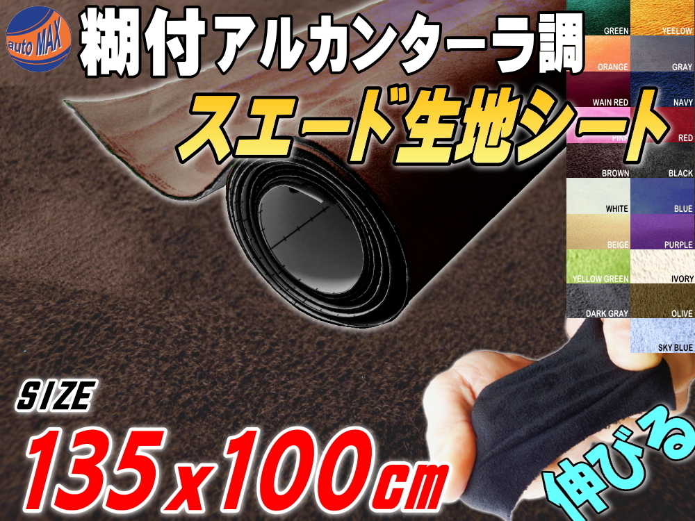 > スエード(大)茶 幅135×100cm伸びるアルカンターラ調スウェード生地スエードシート裏面糊付きカッティング可 シート内装ステッカー車 7