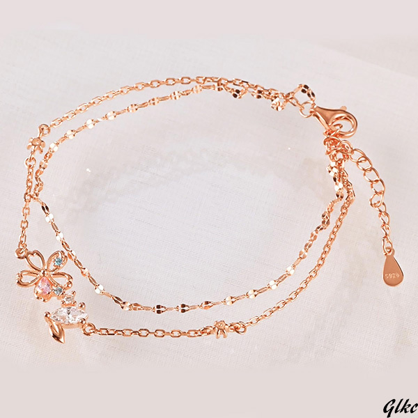- 【ダブルチェーン仕様で動くたびに繊細な揺れを楽しめる】 桜ブレスレット シルバー925 金属アレルギー対応 レディース プレゼント