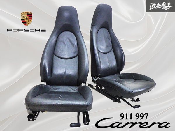 > 【リクライニング動作OK!!】Porsche ポルシェ純正 911 997 カレラ フロント レザー シート 電動シート 左右 2脚セット 黒レザー 即納 棚42F