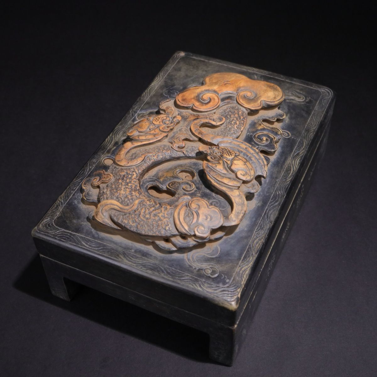 - 【永】清時代 林召堂銘 端石彫 如意雙福硯 極細工 端渓硯 書道具 文房具 置物擺件 古美術品 時代物 古董品 収集 旧家蔵出 中国唐物 A82