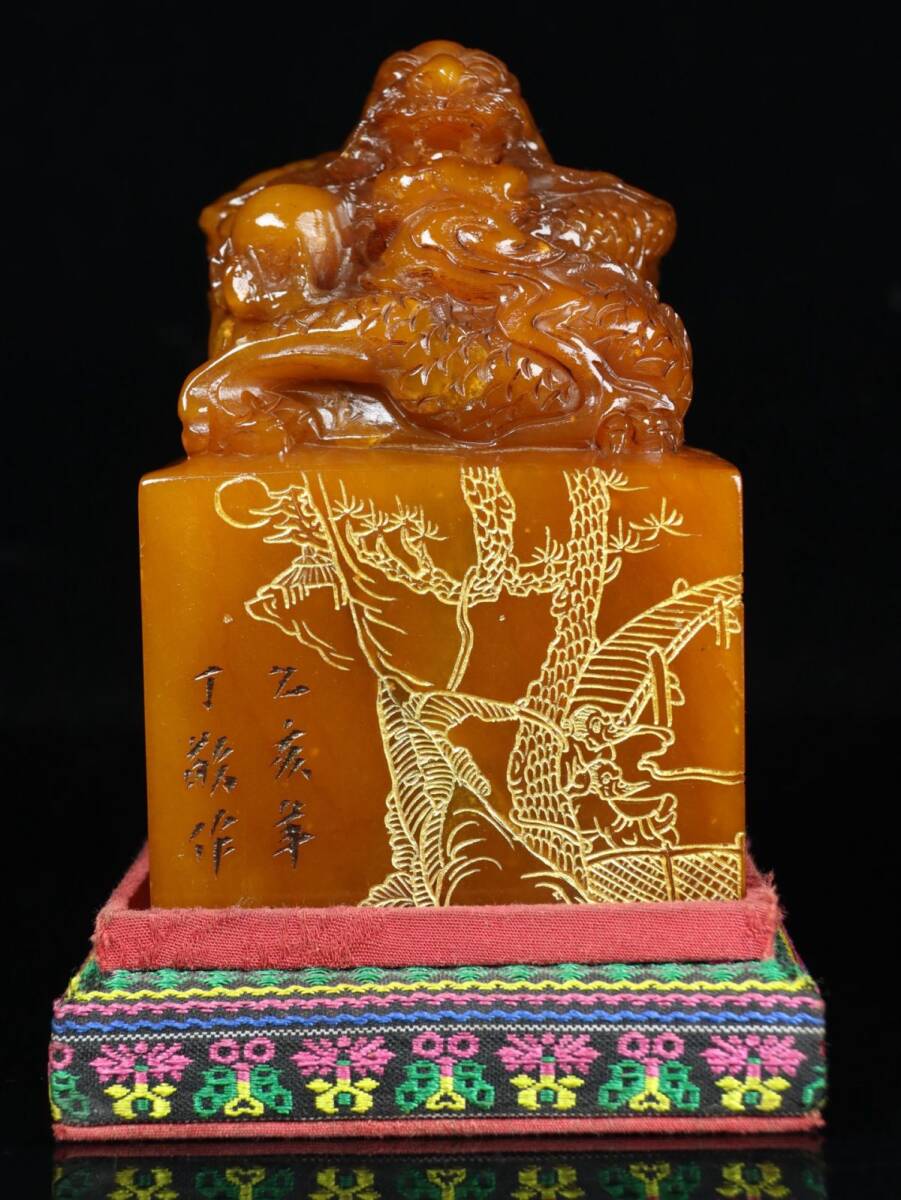 > 【永】清時代 丁敬銘 壽山石 田黄石彫 龍戲珠鈕 手彫 印章 印鑑 印璽 極細工 置物擺件 古美術品 時代物 古董品 旧家蔵出 中国唐物 1410g