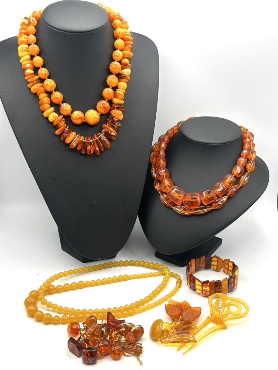 > 1円スタート コハク 琥珀 蜜蝋琥珀 アンバー アクセサリー まとめ イヤリング ネックレス 約300g TK1023-5