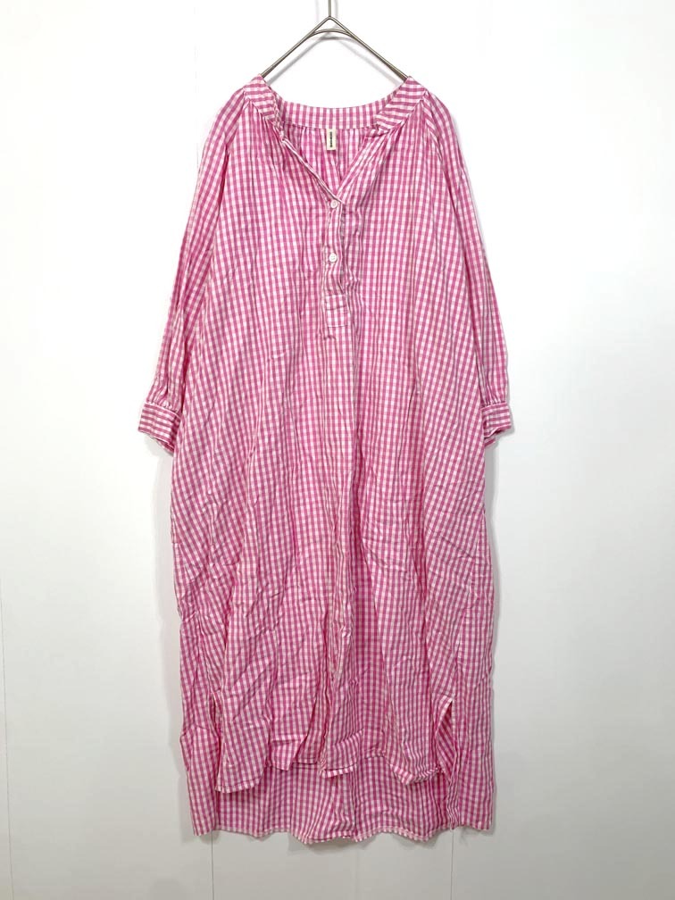 > ゆうパケットOK COCOMOMO ココモモ ギンガムチェック スキッパー シャツ ワンピース sizeF/ピンク ■■