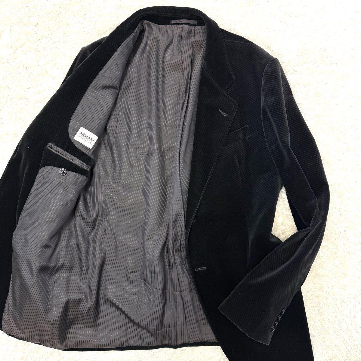> 美品 アルマーニコレッツォーニ ベロア テーラードジャケット XL 52サイズ コーデュロイ ベルベット ARMANI ブラック 黒 イタリア製