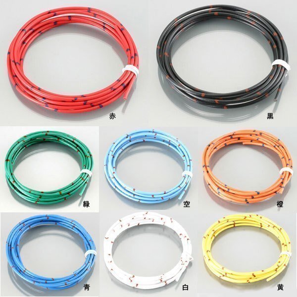 | 商品内容 | ■AVS0.5(許容電力:110W/12V) ■耐熱温度:80℃ ■材質:導体-軟銅撚線 ■材質:絶縁体-PVC製 ■入数:2m×1 ※周辺温度40℃の場合。周辺温度が上がれば許容電力値は下がります。 |