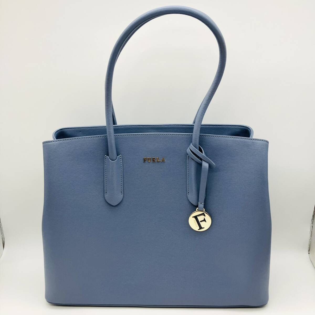 - Furla フルラ レザー トートバッグ チャーム付 ハンドバッグ ライトブルー系