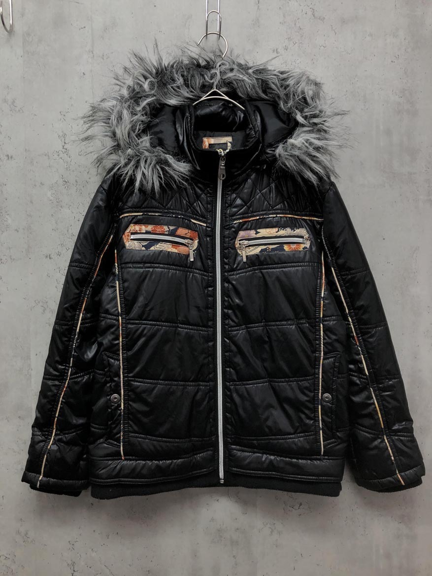 > 雅結 みやびむすび フード ファー ジップアップ 中綿 ジャケット size150/黒 ■■ ☆ fjc2 子供服