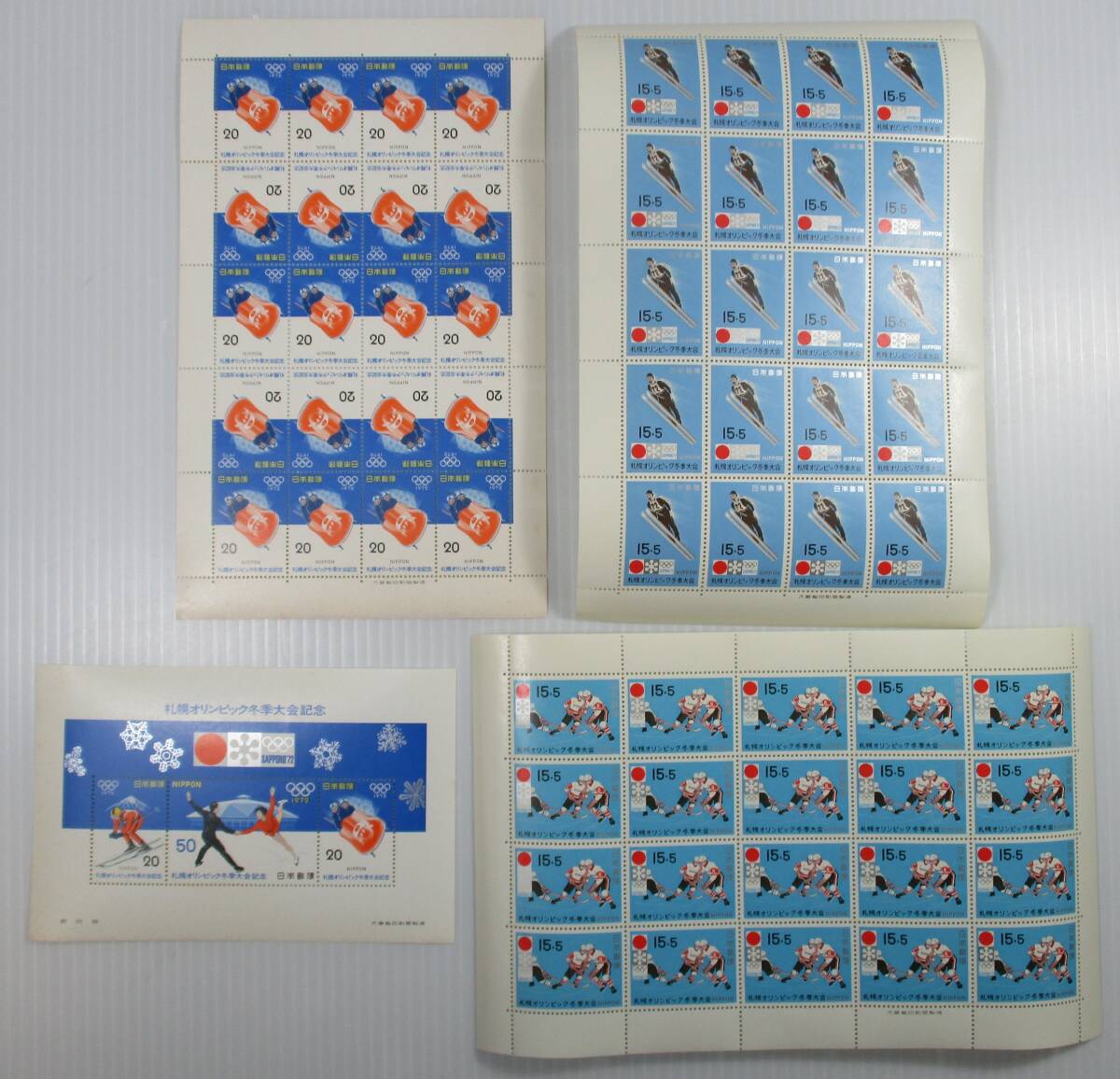 - k-916 札幌オリンピック冬季大会記念切手 20円×20枚 15円×20枚2シート 20円50円20円1シート 未使用品 合計4シート