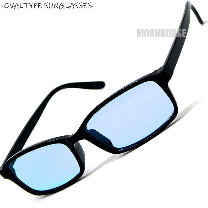 - 送料無料 スクエア サングラス メンズ レディース オーバル型 UVカット ライトブルーレンズ カラーレンズ 伊達眼鏡 伊達メガネ 新品☆