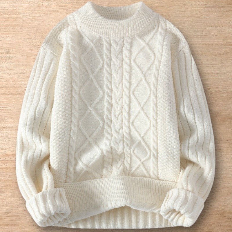 - Y087-XL ホワイト 新品DCKMANY ケーブル編み ニットセーター ウール混 プルオーバー ラウンドネック 秋冬トップス 厚手 暖かい メンズ