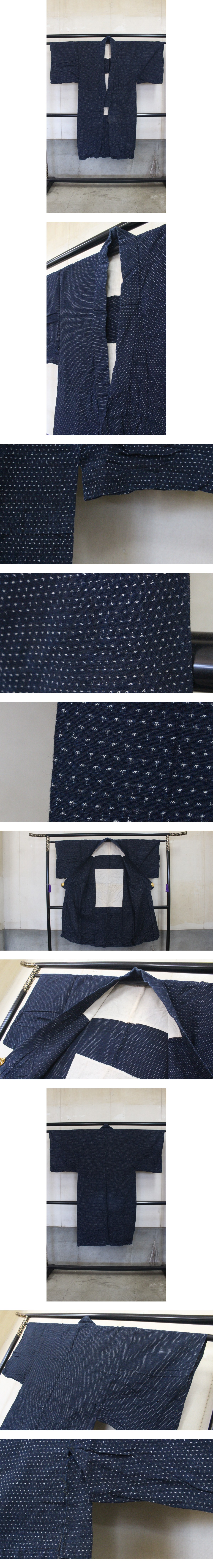 - 藍染木綿 蚊絣 時代物 日本着物和服 古布アンティーク生地 ツ75