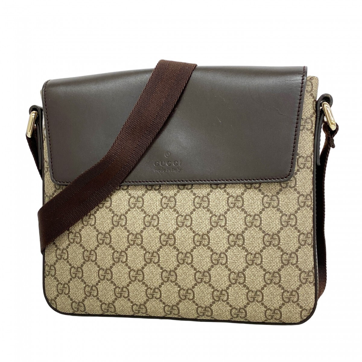 - 【5md4630】グッチ ショルダーバッグ GGスプリーム 353430 PVC レザー ブラウン ベージュ シャンパンゴールド金具【中古】レディース