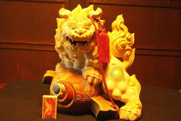 > 【蔵出し】★美品 置物『九谷焼 金彩唐獅子の置物』★検:(初だし/日本人形/伝統工芸/昭和レトロ/古民家/当時物)70501A