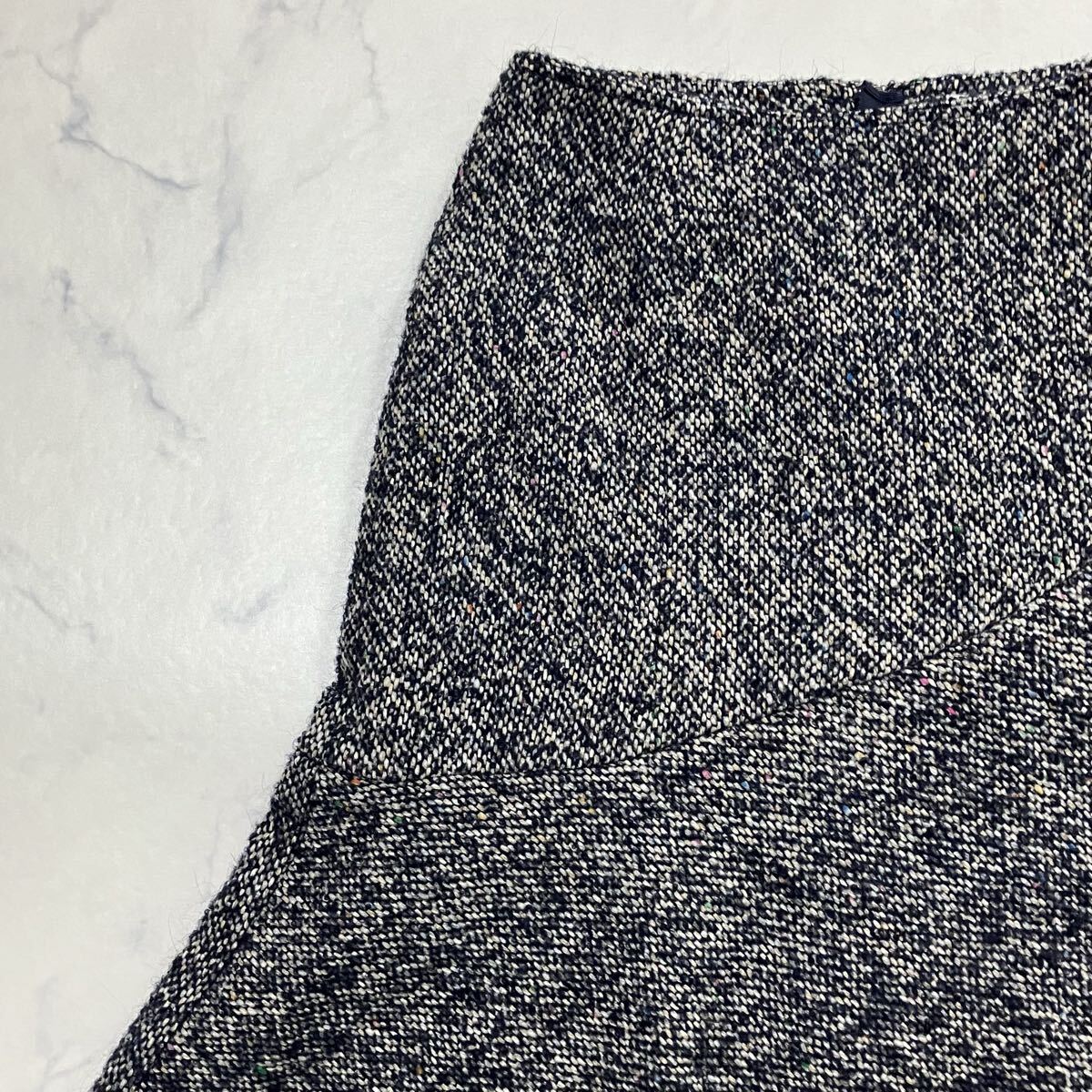 > Spick & Span スピックアンドスパン 日本製 ローゲージ ネップ ニット ラップ調 裏地付き ジップ ウール混 フレア ひざ丈 スカート 38