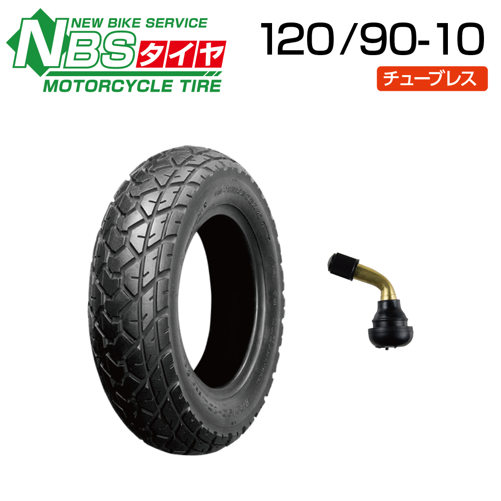 - NBS 120/90-10 54J T/L バイク オートバイ タイヤ 高品質 & エアバルブ曲型1個付き バイクパーツセンター