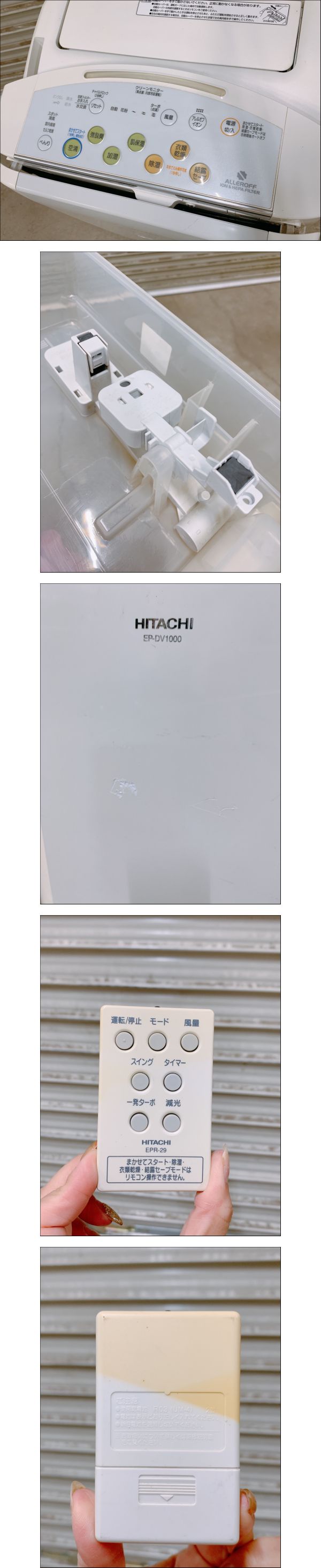 > 中古 HITACHI 日立 空気清浄機 EP-DV1000 オールシーズン 除湿 衣類乾燥 強脱臭 2010年製 リモコン付き 茨城県常陸大宮市 1022か3 D2 160