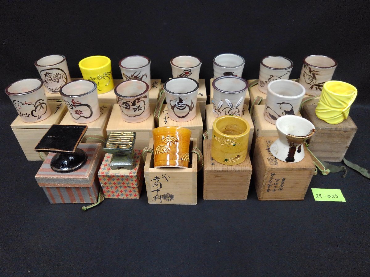 - ★24―023★茶道具 蓋置 大量まとめ 香斎/印材蓋置/半七 黄瀬戸 鶴亀ふた置/八代 吉向十三軒 干支 陶器 共箱 在銘 落款 古美術[100]