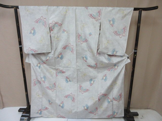 - 1円 良品 大島紬 正絹 着物 和服 和服 蝶々 幾何学 抽象 お洒落 高級 単衣 身丈159cm 裄68cm【夢職】★