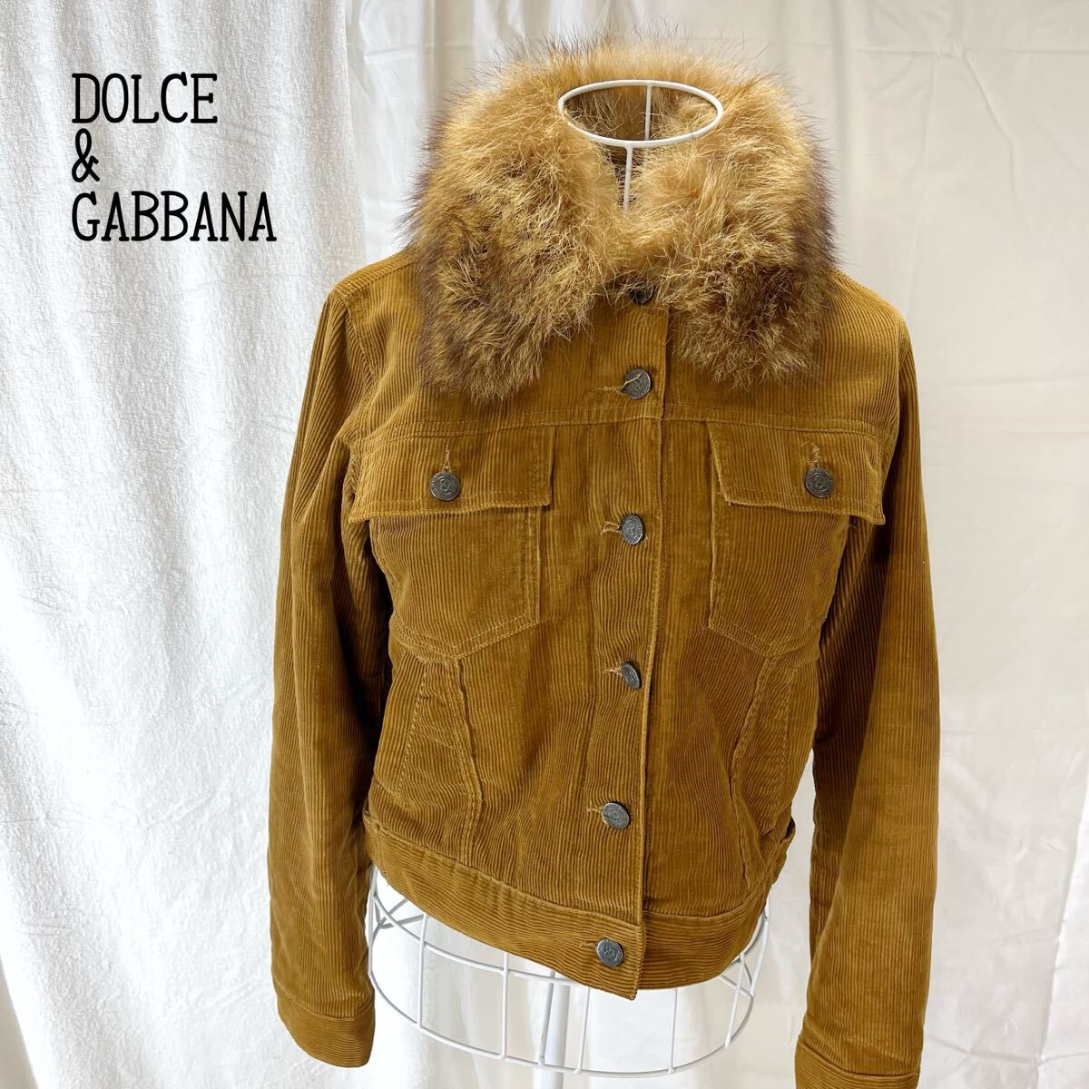 > ドルチェ&ガッバーナ DOLCE&GABBANA コーデュロイ ファー襟 ジャケット 茶 38 伊製 裏キルティング ロゴボタン レディース 秋冬 アウター