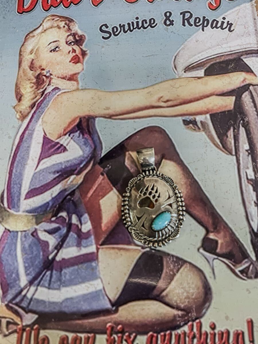 - 【ナバホ族 】ベアクロー ペンダントターコイズ×STERLING)ハンドメイド 一点物 インディアンジュエリー シルバー925