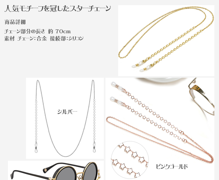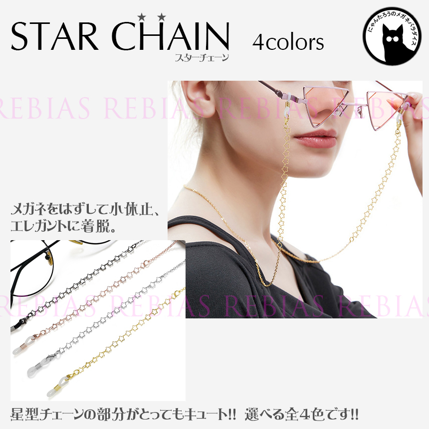 - 送料無料 メガネチェーン スターチェーン 【ブラック】 星 STAR 軽量 眼鏡 チェーン