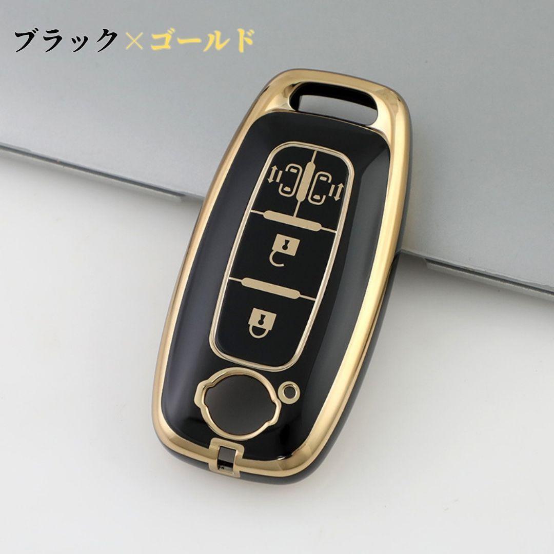 - 【送料無料、匿名配送】日産Nissan新型 スマートキーケース TPU キーカバー 4ボタン 両側スライドドア 黒金