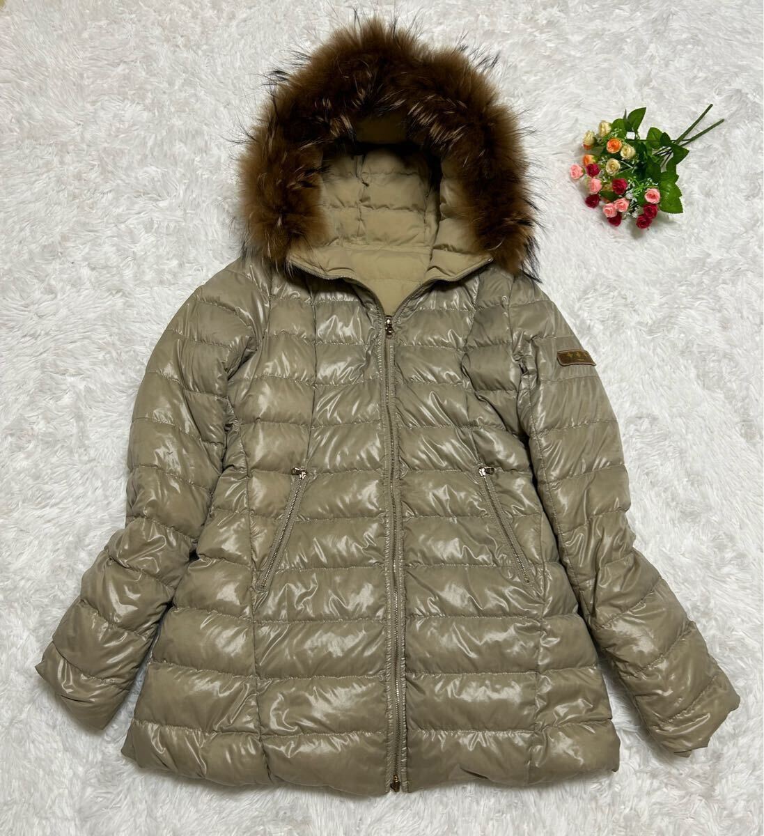 > TATRAS タトラス 人気 リバーシブル ダウンジャケット ダウンコート ブリッダコート ラクーンファー ベージュ系 M