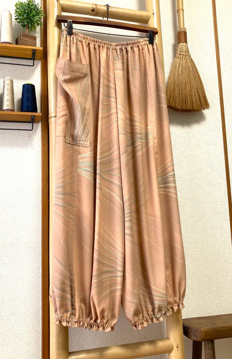 - 鎌倉まるか堂 着物リメイク 伽羅色長葉のもんぺ風 ●絹 ●ゆったりまるっこいシルエット L~LL●裾ふわパンツ●洗濯OK