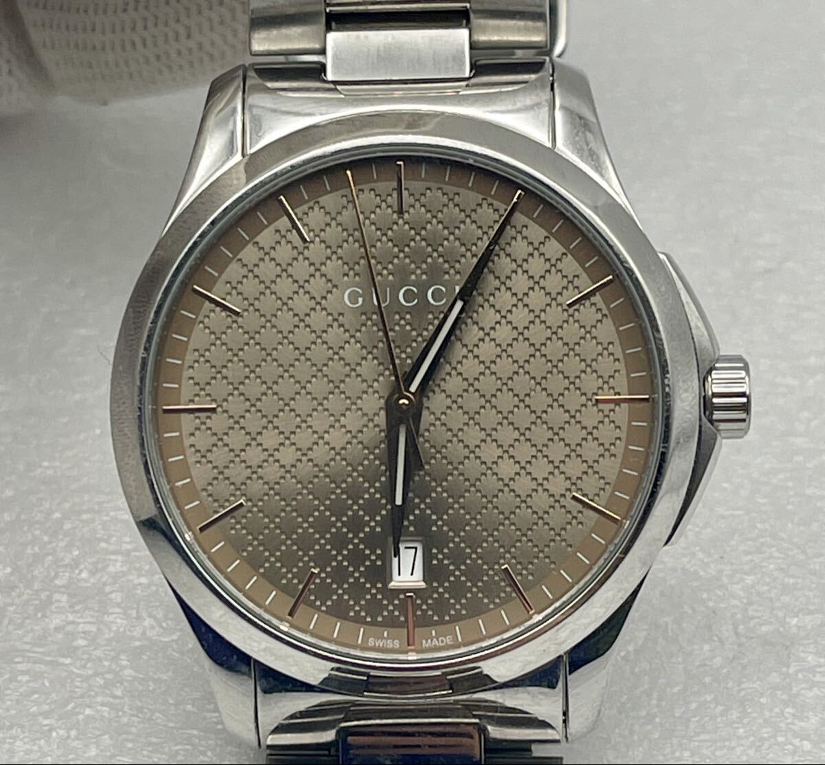 > 1円〜①【電池交換済み】稼働 美品 GUCCI Gタイムレス メンズ 腕時計 SSクオーツ ブラウン文字盤 126.4