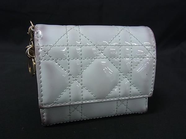 > 1円 ChristianDior ディオール レディディオール ロータス パテントレザー 財布 ウォレット 小銭入れ 札入れ ミントグリーン系 FN7277
