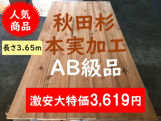 - 2-1 秋田杉 AB級 本実加工 プレナー仕上げ 長さ3650 サ)床材壁材天井材激安杉材訳ありB品