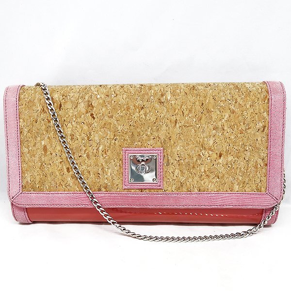 > DKG★送料無料★ GINZA Kanematsu 銀座かねまつ コルク チェーン クラッチバッグ ピンク エナメル クラッチ チェーンバッグ