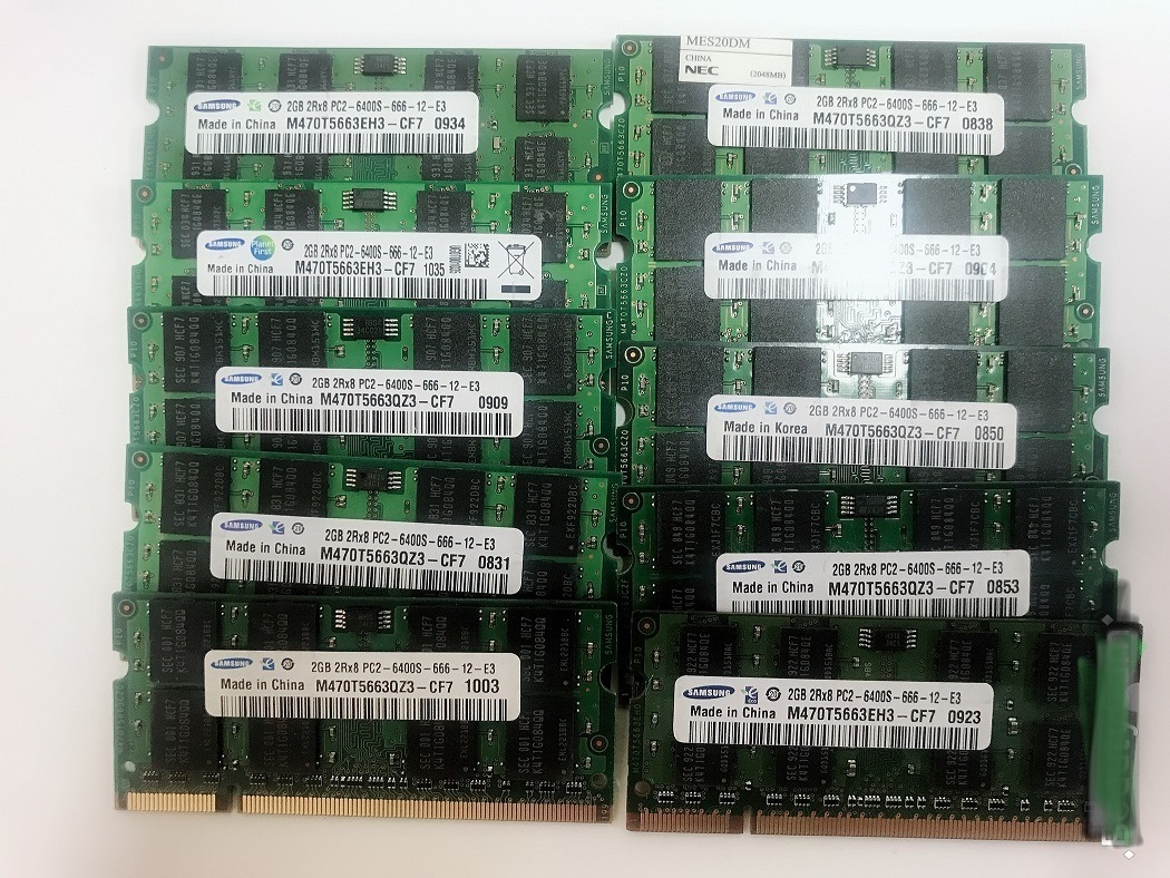 - ★中古動作品★ノートPC用メモリ SAMASUNG PC2-6400S DDR2 800 2G 10枚セット★送料無料★初期保障あり