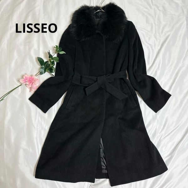 - LISSEO◇リッセオ ファー付きロングコート ブラック ウール アンゴラ 防寒