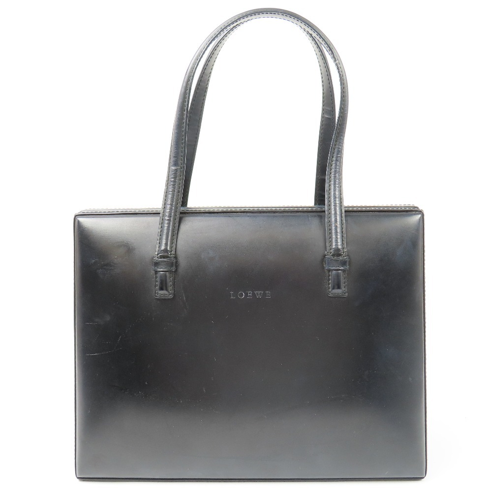 > 203358★1円スタート★LOEWE ロエベ 中綺麗 博物館 スクエア マグネット ヴィンテージ ハンドバッグ レザー ブラック