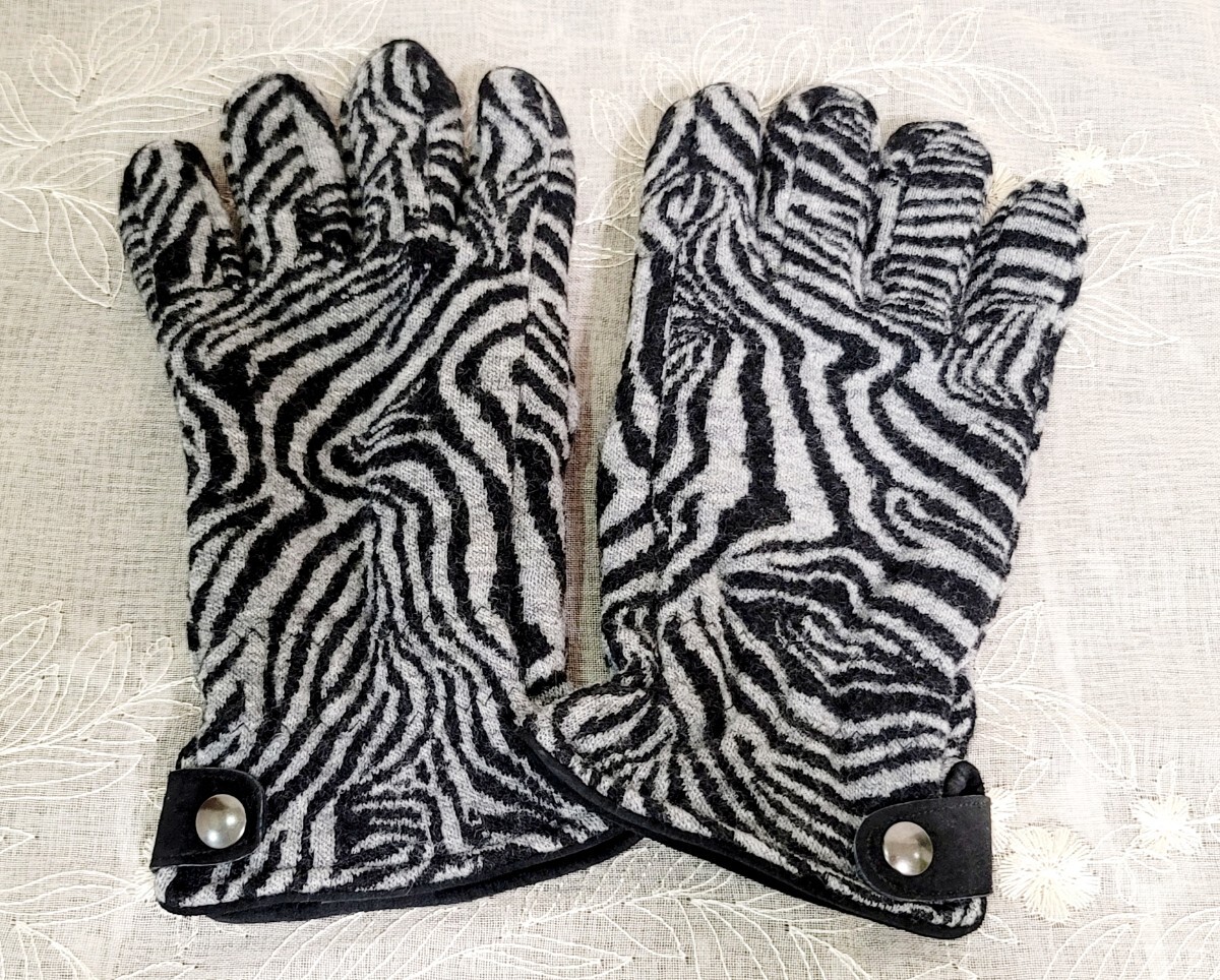 - 【BARNEYS NEWYORK】 手袋 M ゼブラ柄 イタリア製