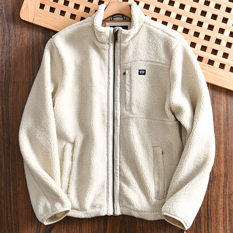 - Y824-XL ベージュ 新品 ゆる感 フリースジャケット アウトドア風 厚手 防寒 保暖 秋冬 裏ボア スタンドカラー アウター メンズ トップス
