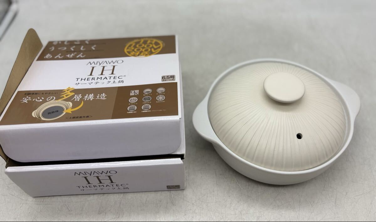 > 【保管品】MIYAWO IH THERMATEC サーマテック 土鍋 6.5号 未使用 多層構造 雑炊 鍋料理 すき焼き 箱付き DM