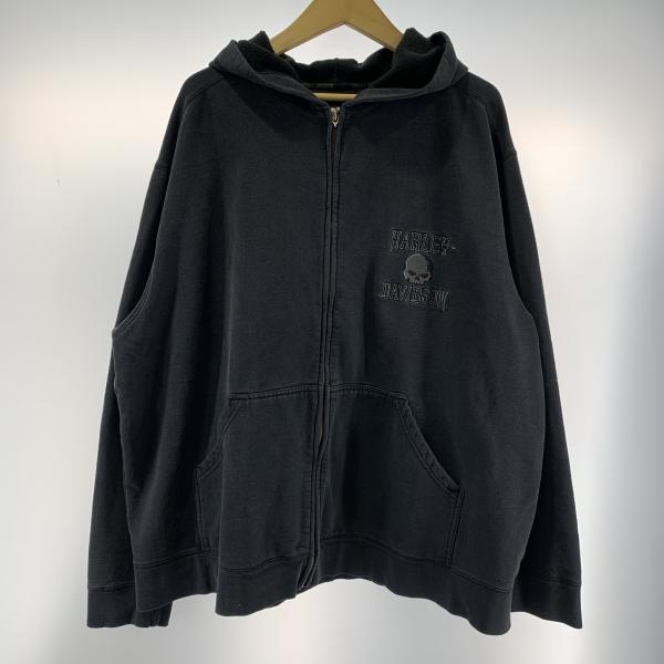 - 【中古】00s Harley Davidson フーデッドパーカー スカル刺繍 ブラック △ファスナー破損[249008275907]