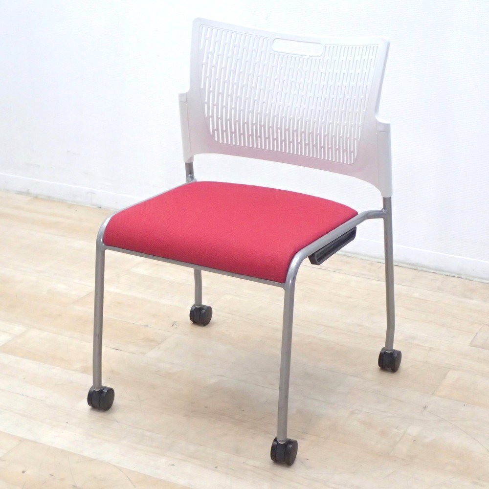 - オカムラ okamura RETE レーテ ミーティングチェア 81R2AY-FFW8 2019年製 レッド スタッキングチェア 肘無 椅子 EG18367 中古オフィス家具