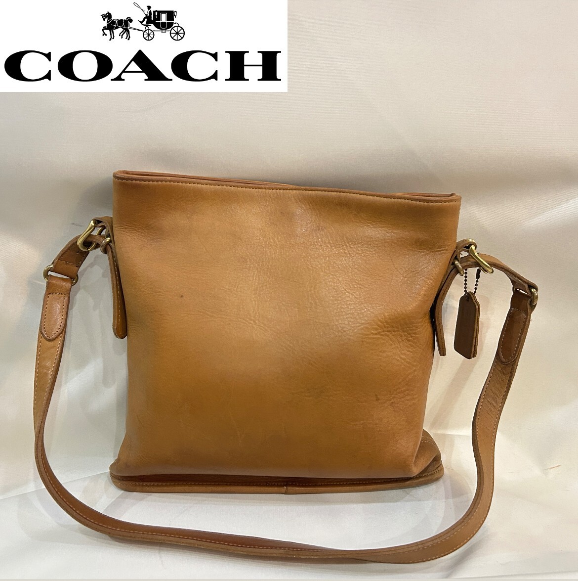 > OLD COACH / オールド コーチ MADE IN USA ショルダーバッグ キャメル スナップボタン 肩掛け アメリカ製 USED