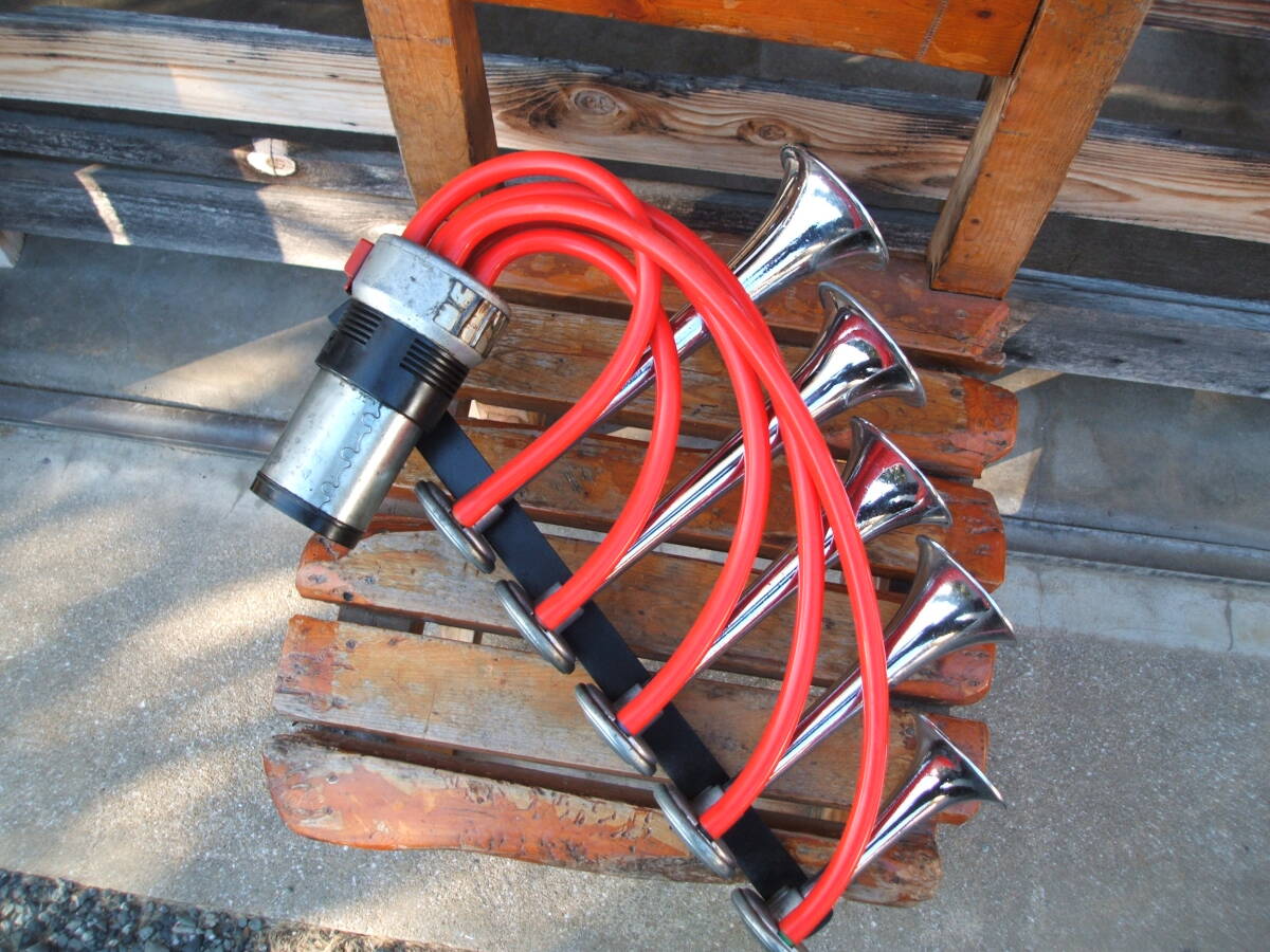 - 当時物 5連ミュージックホーン ラッカラーチャ 金属製 鉄ラッパ スチールラッパ 族車 暴走cbxcbrgscbハコスカケンメリ