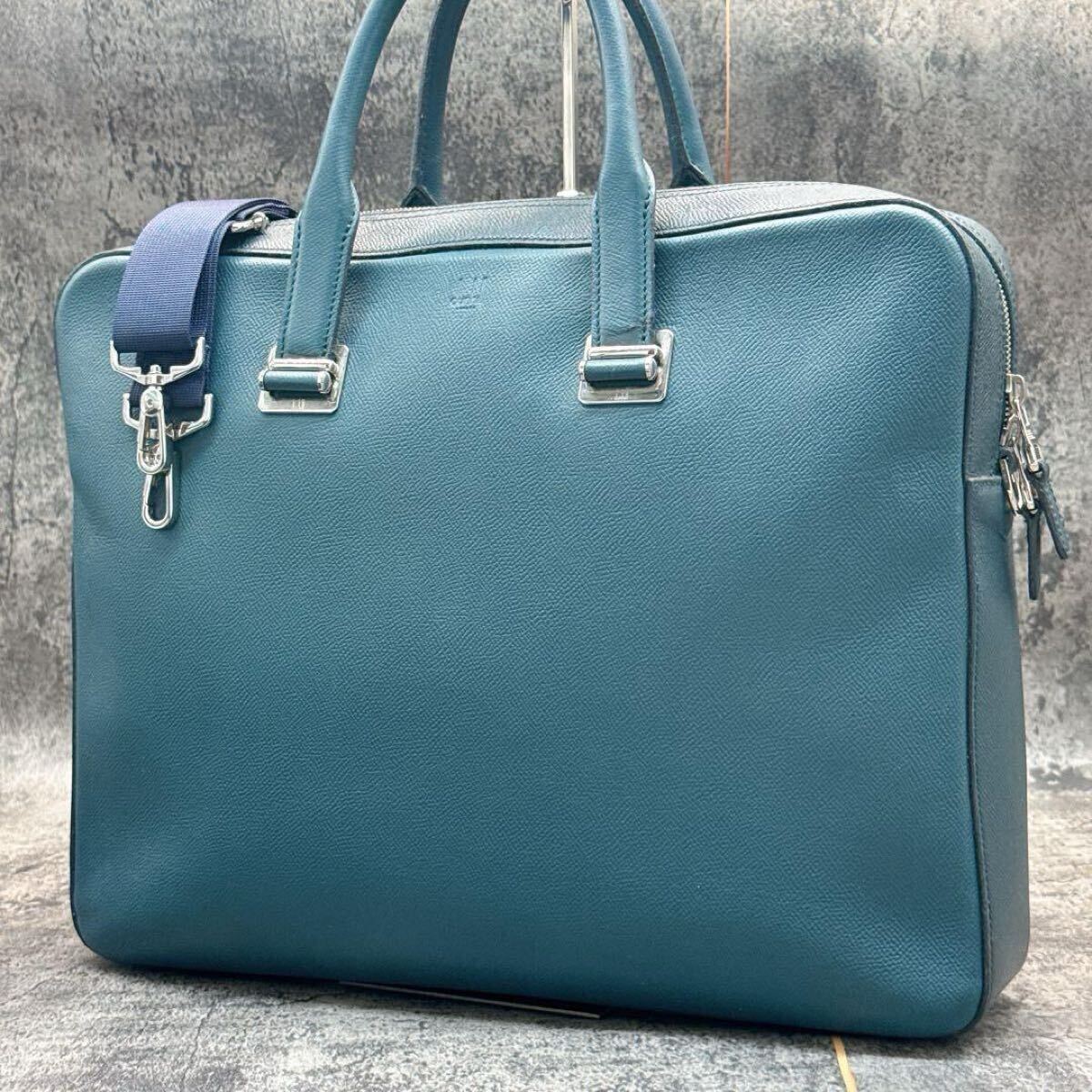 > ■極美品 希少色■dunhill ダンヒル カドガン 2way ビジネスバッグ ショルダー メンズ 大容量 A4 書類 斜め掛け レザー 本革 ブルー系