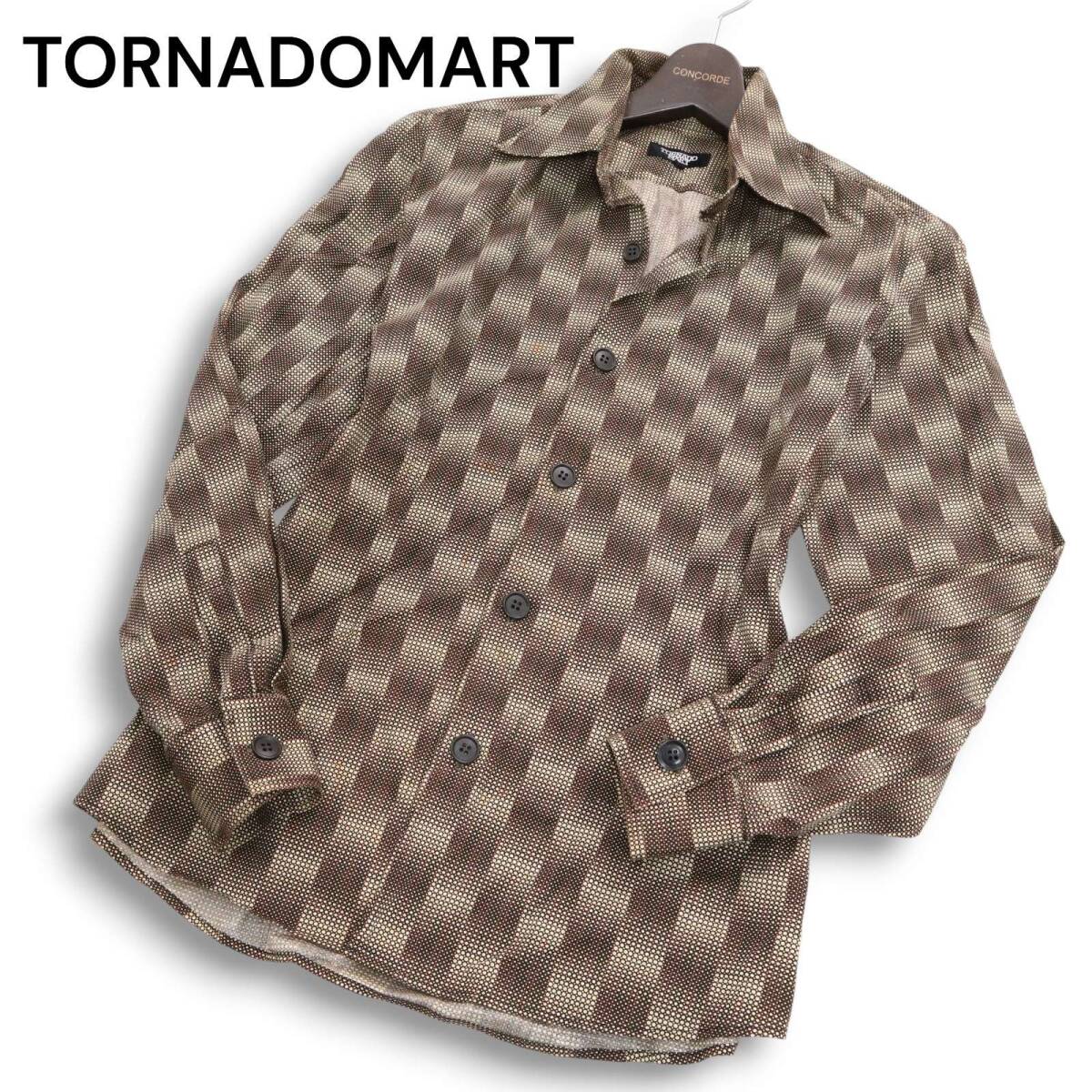 > Y2K 00s★ TORNADOMART トルネードマート 通年 モザイク風 チェッカー ドット 長袖 シャツ Sz.M メンズ 日本製