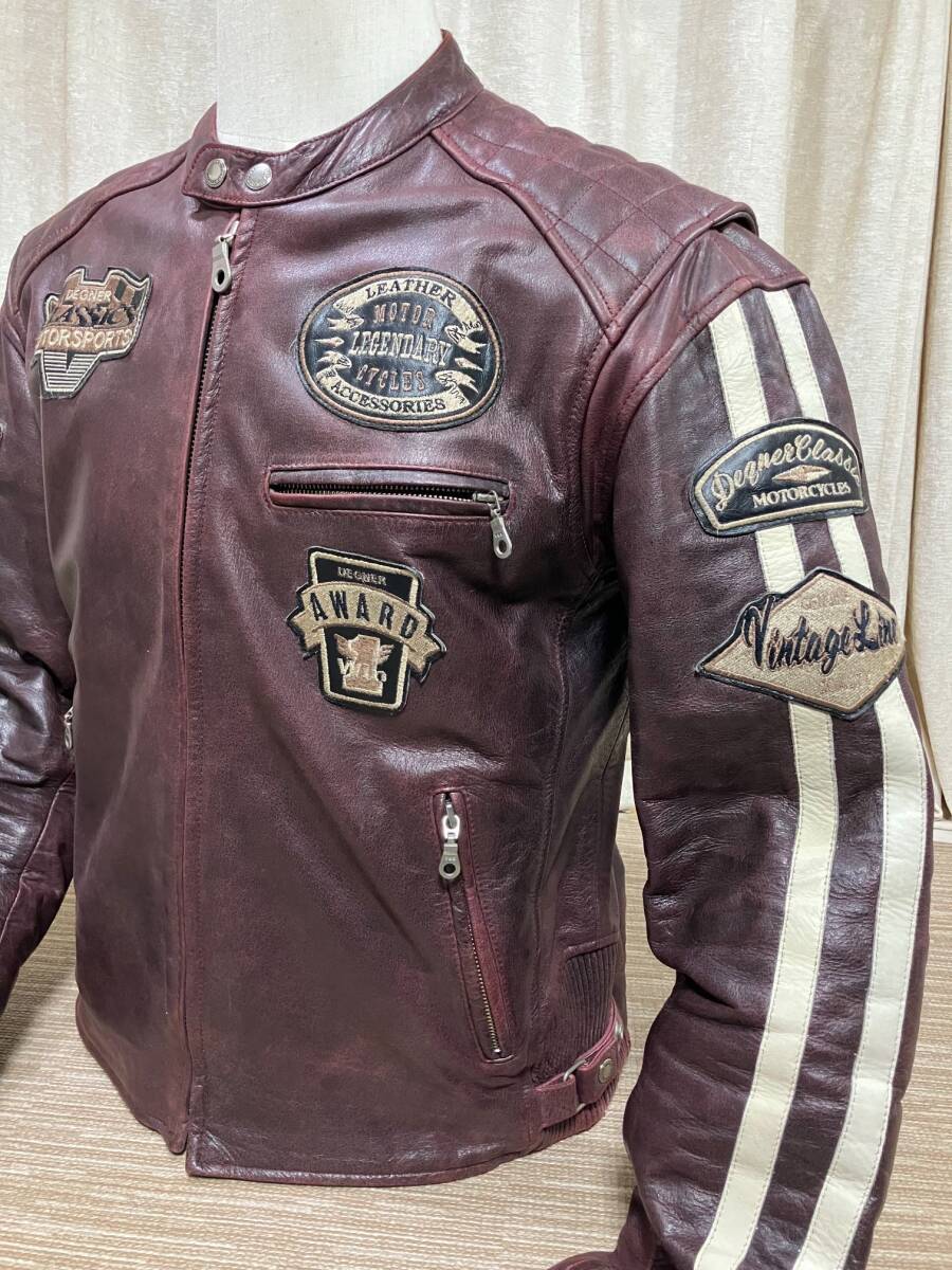 - DEGNER 牛革製 中綿入り ライディングレザーJKT 赤茶ダメージカラー XLサイズ 身長175-180cm 肩/肘パッド付き