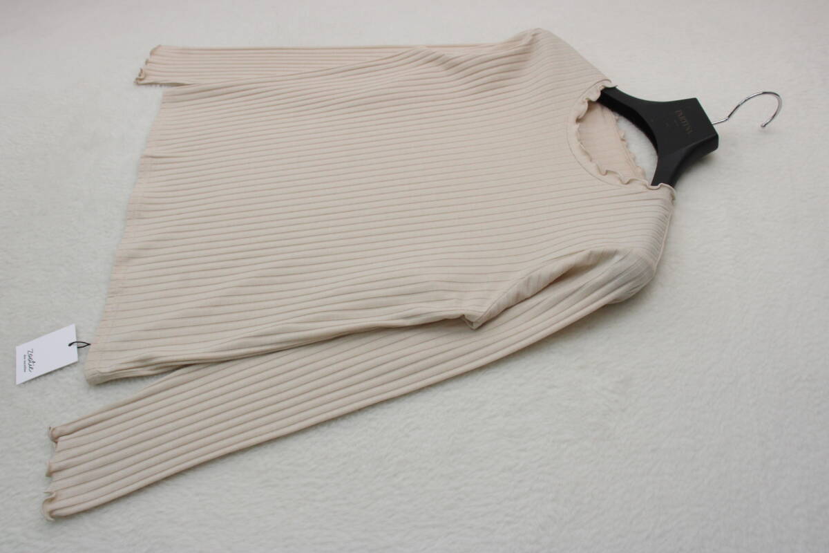 - 5126 新品タグ付き メロウフリルリブカットソー ライトベージュLサイズ
